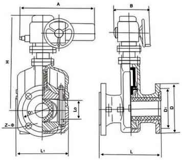 公称 通径 (DN) | 公称 压力 (MPa) | 工作 压力 (MPa) | L | L1 | L0 | D | D1 | Z-Φ | H | 电动装置 |