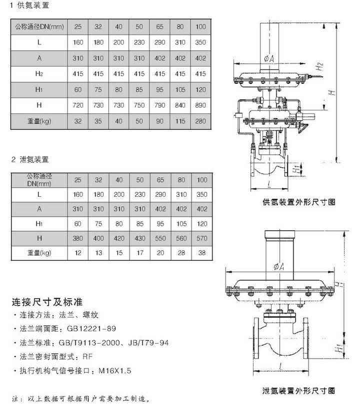 氮封阀 主要外形尺寸